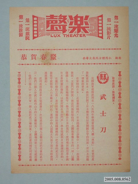 本件保存良好,為單色雙面印刷,為電影大破死光城The Fiction-Makers電影單。由羅傑摩爾Roger Moore主演,導演Roy Baker。電影宣傳為隱形死光陣、核子雷光機、霹靂槍、閻王細毒…最新型無影武器全部出籠、驚天動地排山倒海最大聲勢最大賣座。電影單背面為武士刀The Bushido Blade宣傳,1980年上映。