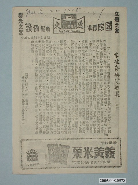 本件保存良好,為黑白雙面印刷,為電影宇宙洪荒The Lost World電影單。由米高蘭妮Michael Rennie、裘莉聖鍾 Jill St. John、法蘭度拉瑪 Fernando Lamas主演,導演 Irwin Allen。電影單背面為拿破崙與戴絲麗宣傳。