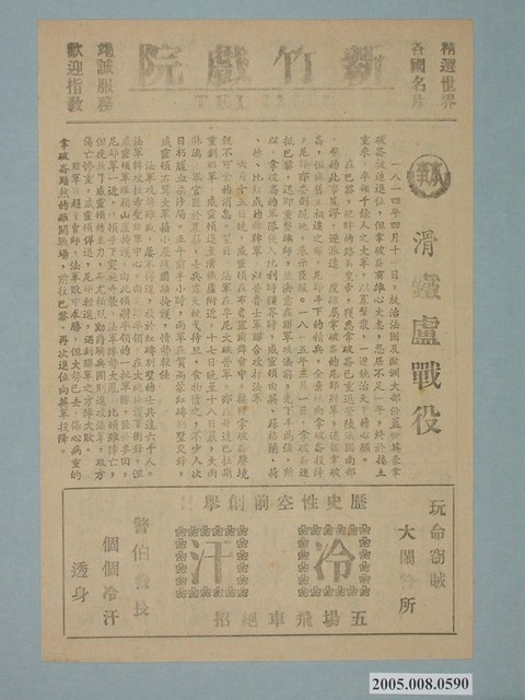 本件保存良好,為黑白雙面印刷,為電影巴拉巴Barabbas電影單。由安東尼昆Anthony Quinn、施維諾眾嘉奴Silvana Mangano、歐尼斯鮑寧Ernest Borgnine、維多利嘉士曼Vittorio Gassman、傑克佩達斯Jack Palance主演,導演 Richard Fleischer。電影單其他部分為633轟炸大隊、滑鐵盧戰役宣傳。