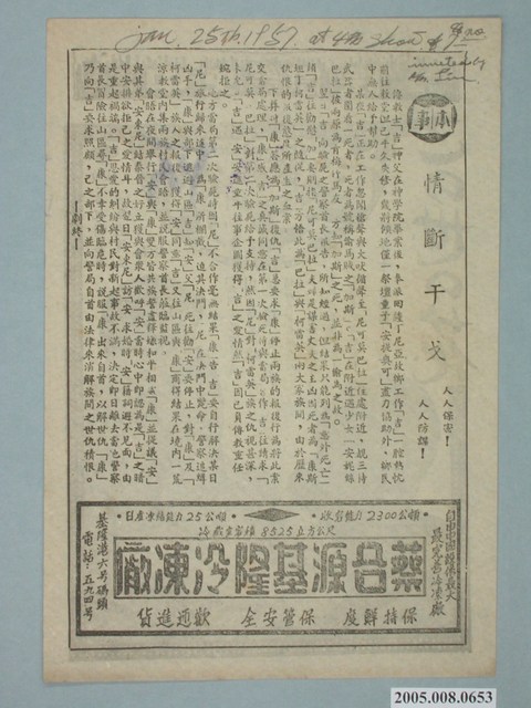 本件保存良好,為黑白雙面印刷,為電影今世之花この世の花電影單。由川喜多雄二、淡路惠子主演,導演穂積利昌。電影單其他部分為情斷干戈宣傳。