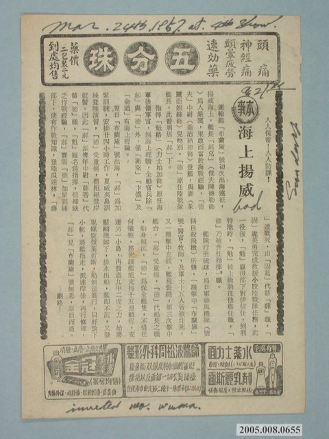本件保存良好,為黑白雙面印刷,為電影力敵萬人Zarak電影單。由維多麥丘 Victor Mature主演,導演 Terence Young。電影單其他部分為海上揚威宣傳。