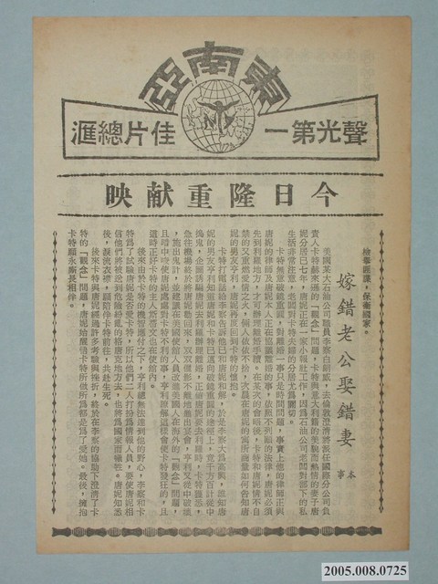 電影廣告單《我愛西施 續集》直幅單張雙面黑色印刷,外觀保存良好。 一面是東南亞戲院「嫁錯老公娶錯妻」本事。一面是《我愛西施 續集》電影宣傳海報。 《我愛西施 續集》(Sissi - Die junge Kaiserin (1956))。這部電影是關於奧地利伊麗莎白“西西”的電影三部曲中的第二部,這部影片記錄了這位年輕女皇的婚姻生活,因為她試圖適應宮殿中正式和嚴格的生活,以及一位咄咄逼人的婆婆。