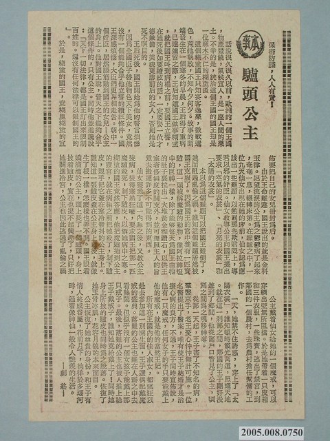 電影廣告單《世界的邊緣》直幅單張一面黑色印刷、一面紅色印刷,外觀保存良好。 一面是「驢頭公主」本事傳。一面是《世界的邊緣》電影宣傳海報。 《世界的邊緣》(The Light at the Edge of the World (1971))。一個無情的海盜捕獲了阿根廷最南部城市的燈塔守護者。他的目標明顯且可怕。他計劃控制燈塔的信號,使過往的船隻在岩石上被擊碎。