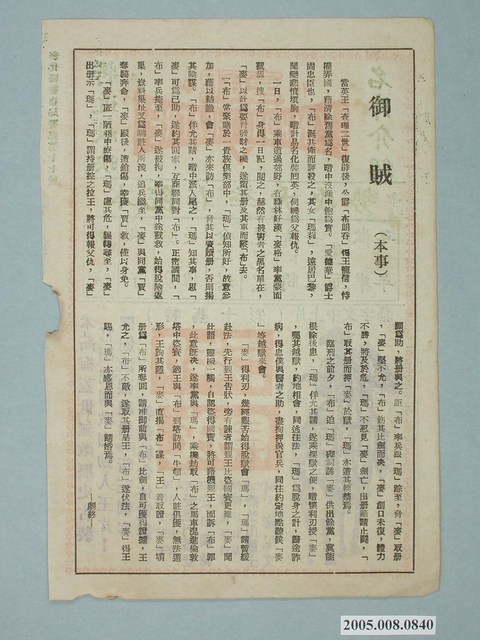 電影廣告單《御賊》直幅單張黑色印刷、紅綠藍三色印刷,外觀保存良好。 一面是《御賊》本事。一面是彰化銀宮《御賊》電影宣傳海報。 《御賊》(The King's Thief (1955))。一名前士兵轉向高速公路上的人發現了一個從查理二世國王手中控制英格蘭的陰謀。