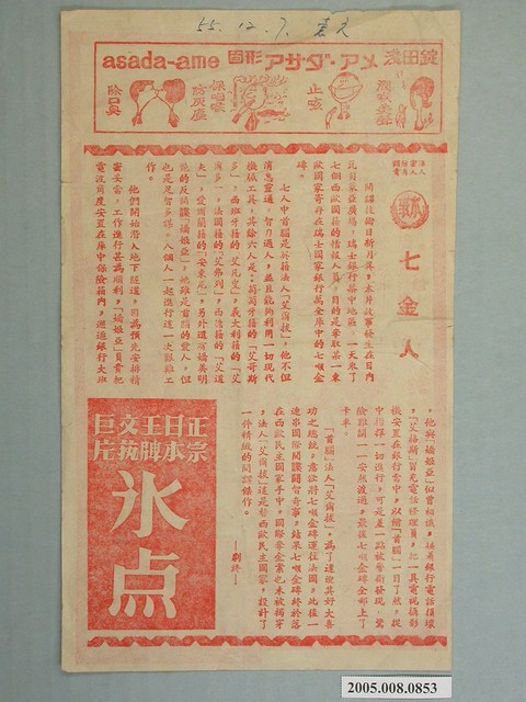 電影廣告單《鐵怒漢》直幅單張雙面紅色印刷,外觀保存良好。 一面是「七金龍」本事。一面是《鐵怒漢》、「啼笑姻緣」電影宣傳海報。 《鐵怒漢》(英譯:A Stranger in Sacramento意語原文:Uno straniero a Sacramento (1965))。Mike Jordan逃離監獄為他的父親和兄弟的死亡辯護。