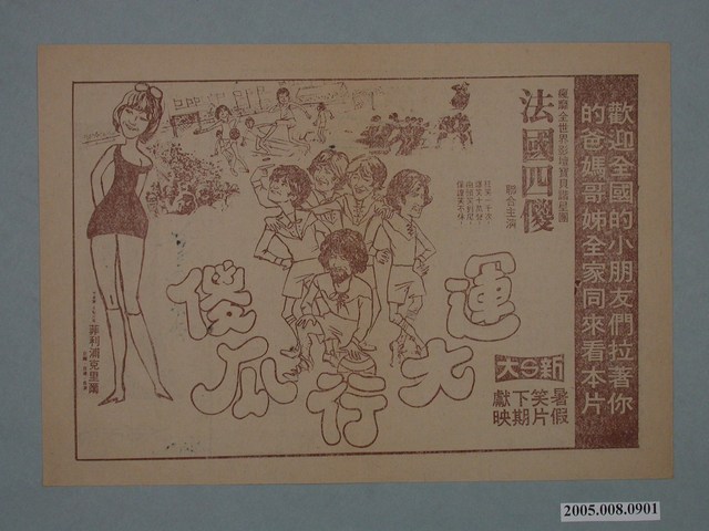 本件保存良好,為大新出品,傻瓜行大運Les bidasses en folie電影廣告單。電影由Jean-Guy Fechner、 Gérard Filipelli、Luis Rego、Gérard Rinaldi、主演,導演為Claude Zidi。電影單其他部分為電影魂斷藍橋宣傳。
