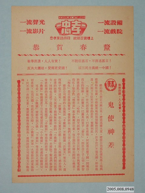 本件保存良好,為忠孝戲院出品,致命的吸引力 Fatal Attraction電影廣告單。電影由邁可道格拉斯 Michael Douglas、葛倫克蘿絲Glenn Close主演,導演為奧卓安萊恩Adrian Lyne。電影單其他部分為電影鬼使神差宣傳。