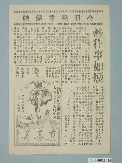 本件保存良好,為中央戲院出品,大冤獄 The Confession/L'aveu電影廣告單。電影由尤蒙頓 Yves Montand、西蒙薛娜麗Simone Signoret主演,導演為Costa-Gavras。電影單其他部分為電影烽火桃源、門後怪客、往事如煙、真善美宣傳。