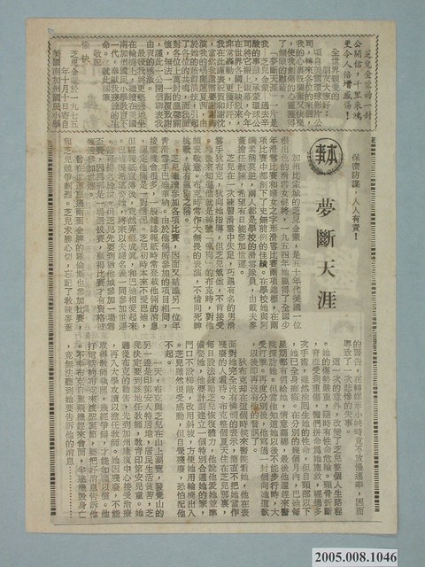 本件保存良好,黑白雙面印刷,為日新戲院出品夢斷天涯電影本事,其他部分為電影春回情斷電影宣傳。