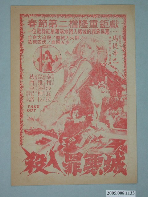 本件保存良好,黑白雙面印刷,為國賓戲院出品軍官與紳士電影本事,其他部分為電影殺人罪惡城宣傳。