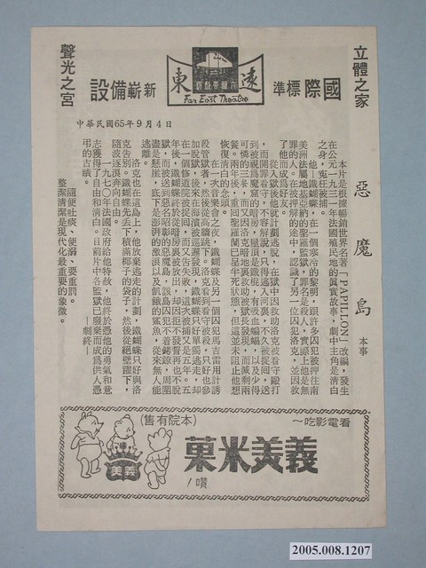 本件保存良好,為遠東戲院出品,怪屋驚魂 Fright電影廣告單。電影由蘇珊喬治 Susan George、伊恩班納 Ian Bannen主演,導演為 Peter Collinson。電影單其他部分為電影惡魔島。