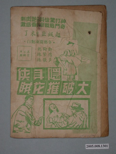 1. 粵語片《冤枉相思》的電影特刊,由堤岸合眾承印,特刊封面上為該片之劇照;內頁則主要是《冤枉相思》的新片介紹、歌曲歌詞、劇照、本事、演員表,以及《猩猩王大鬧天宮》、《猩猩王大戰黃飛鴻》等片之電影廣告;其中並有一頁越南文之介紹。而封底為粵語片《隱身俠大破摧花賊》的電影劇照及文案廣告,強調充滿打鬥槍戰及香艷刺激內容。