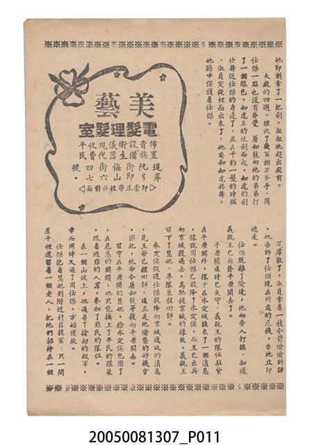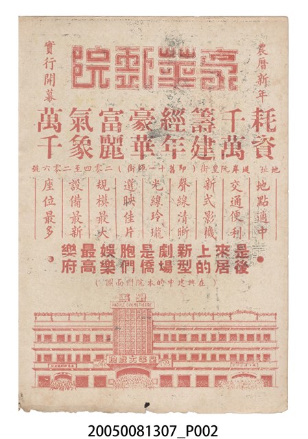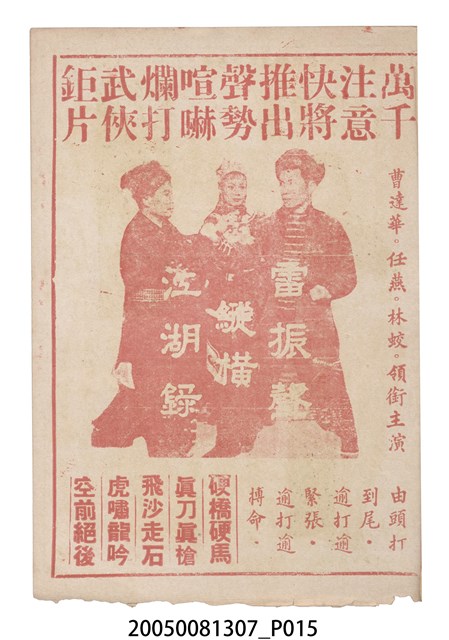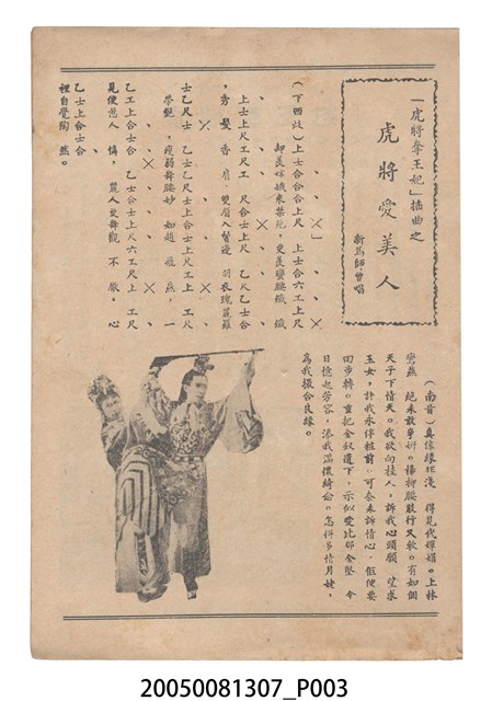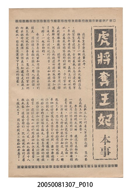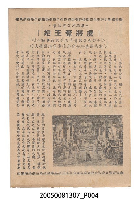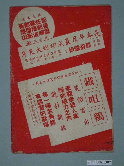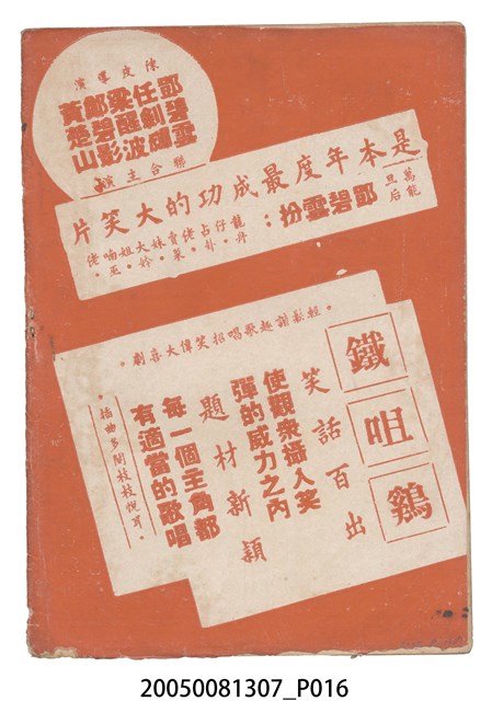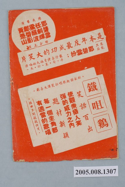 本件保存良好,彩色印刷,為虎將奪王妃電影本事。電影由新馬師曾、關德興、麗兒主演,導演為趙樹燊。背面為電影鐵嘴雞。