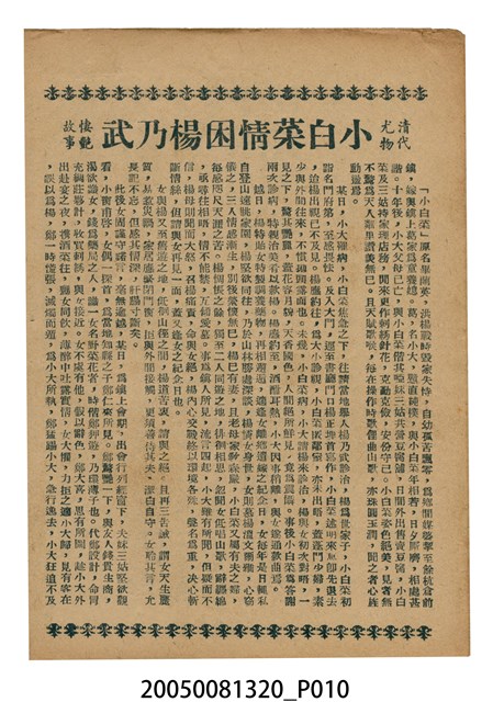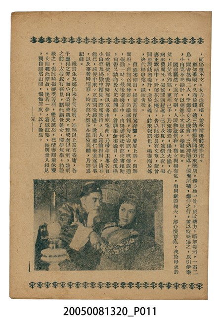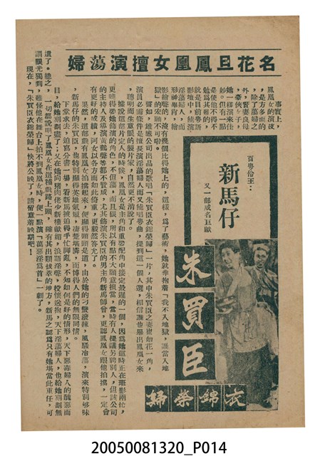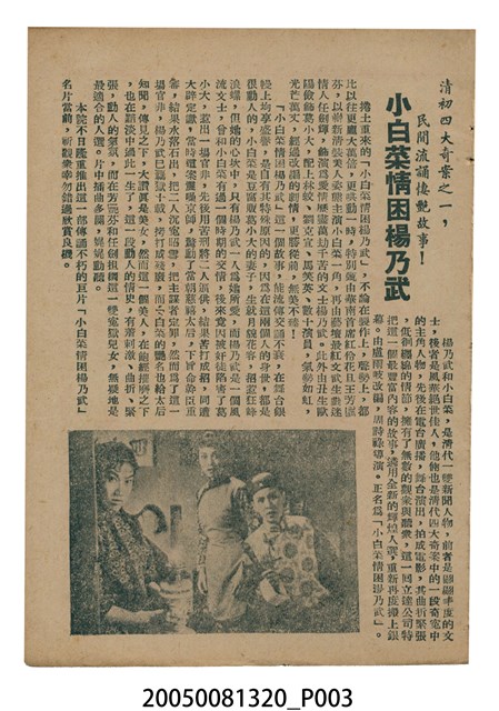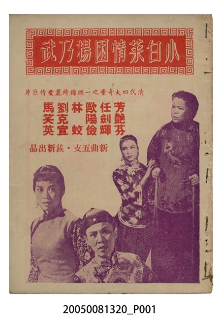 本件保存良好,彩色印刷,為小白菜情困楊乃武電影本事。電影由任劍輝、芳艷芬、歐陽儉、林蛟、劉克宣、馬笑英主演,導演為周詩祿。背面為電影朱買臣衣錦還鄉。