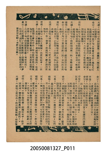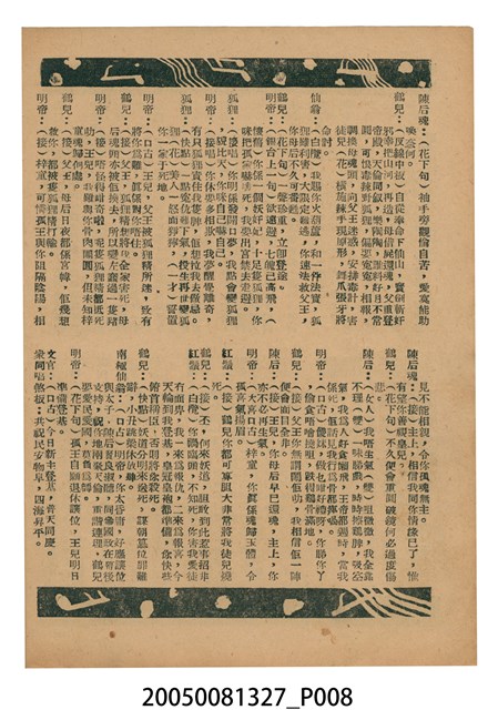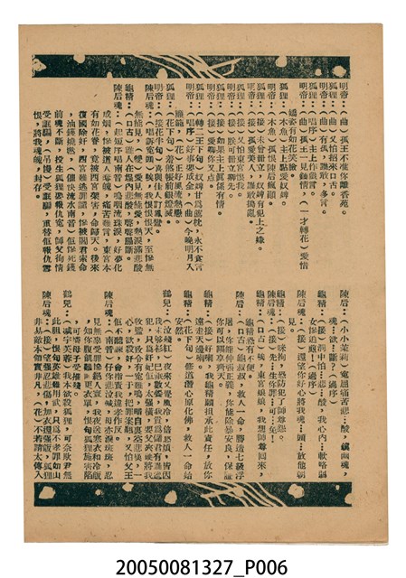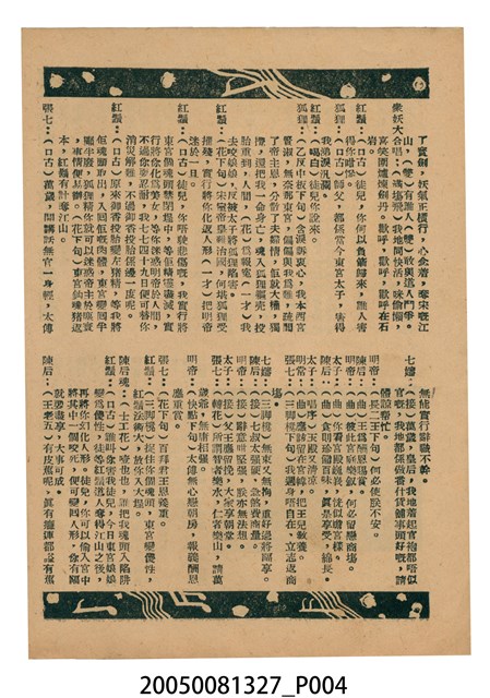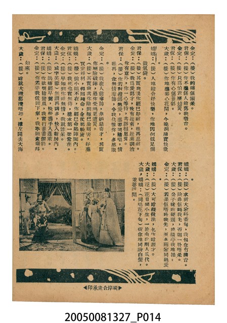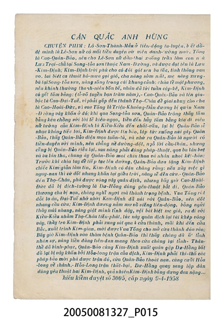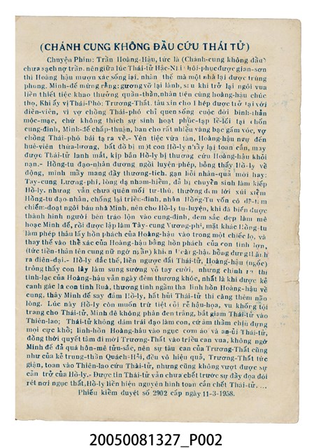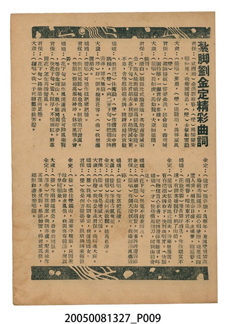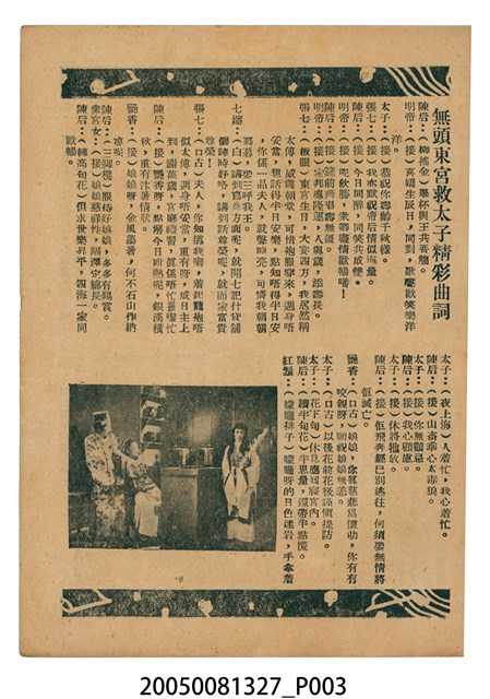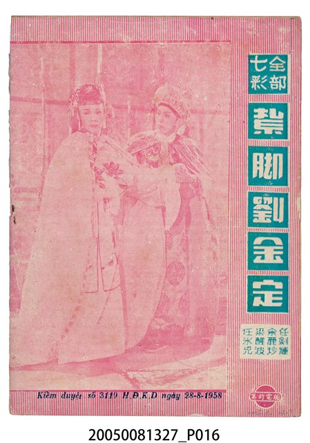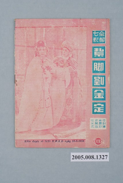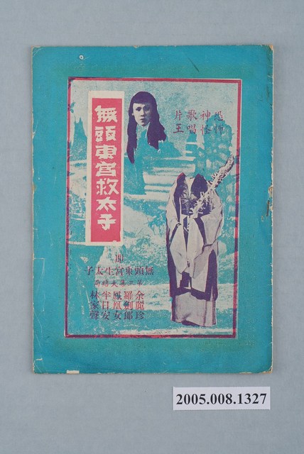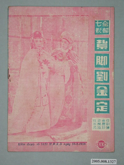 本件保存良好,彩色印刷,為無頭東宮救太子電影本事。由羅劍郎、余麗珍主演,導演龍圖。背面為電影紮腳劉金定。