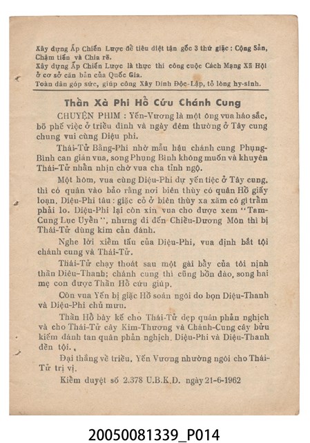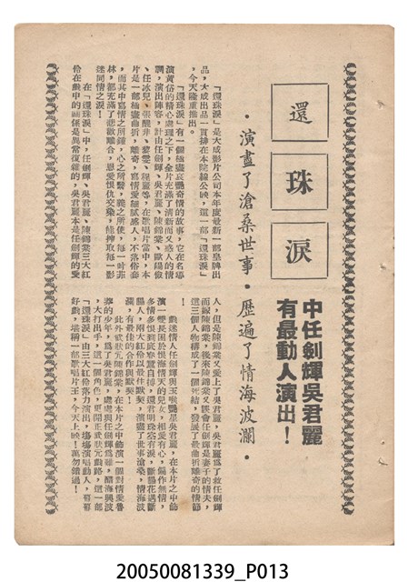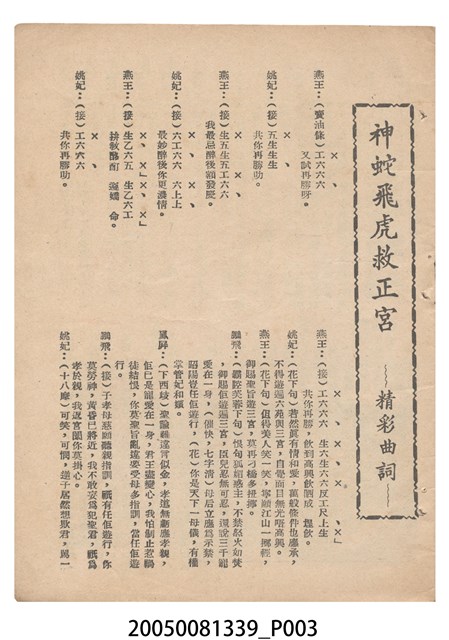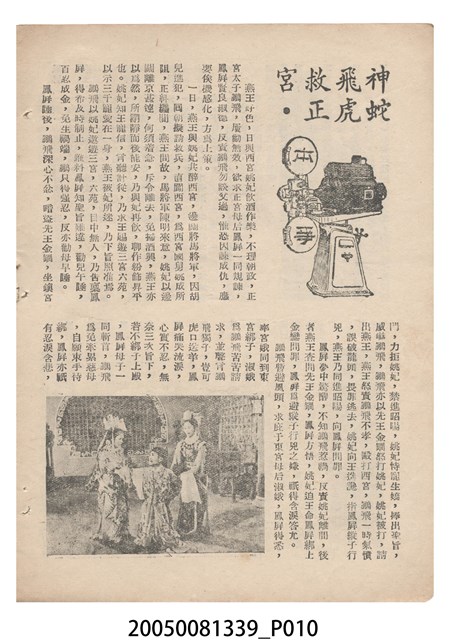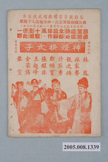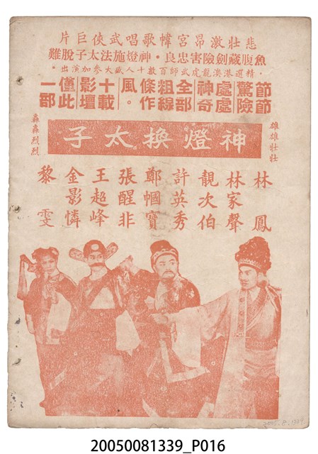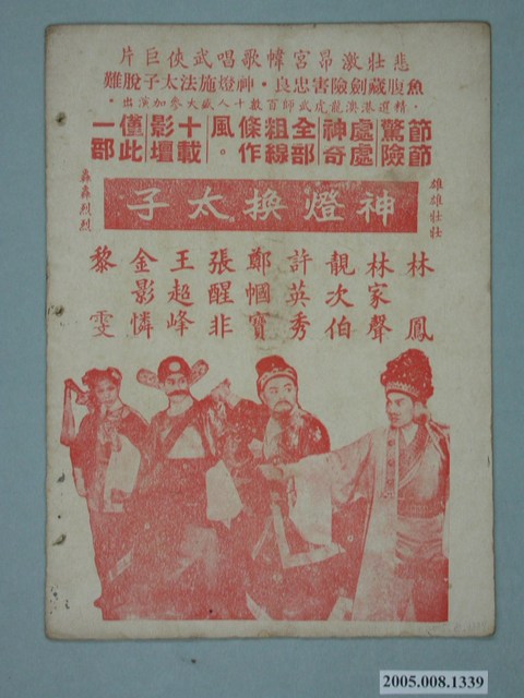 本件保存良好,彩色印刷,為神虎飛蛇救正宮電影本事。由余麗珍、林家聲、半日安主演,導演珠璣。背面為電影神燈換太子。