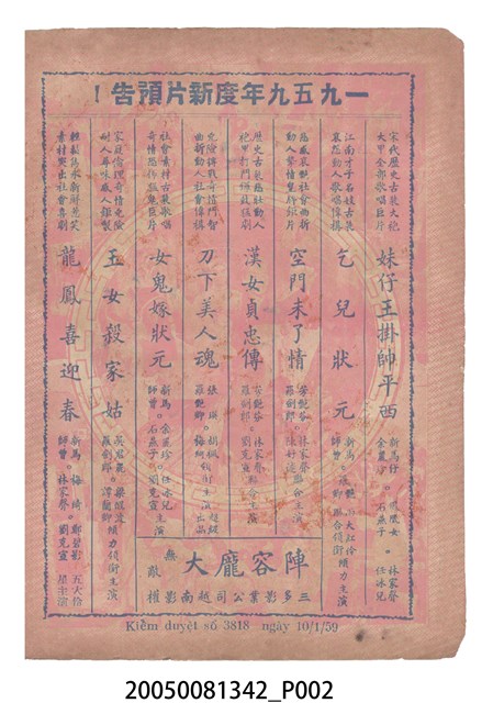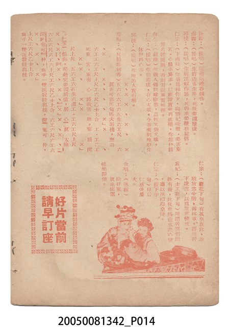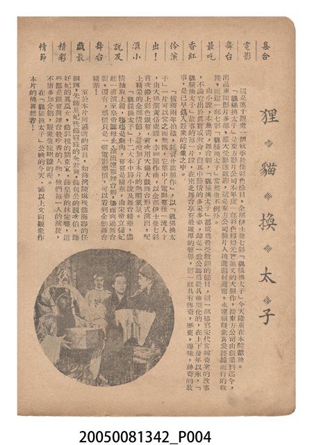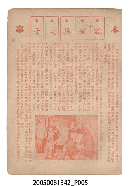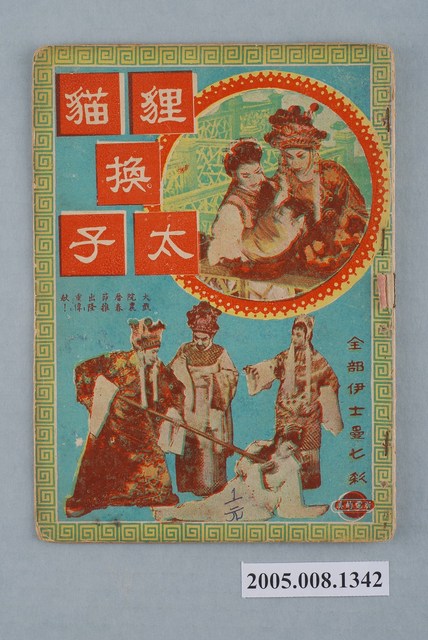 本件保存良好,彩色印刷,為貍貓換太子電影本事。由任劍輝、吳君麗主演,導演黃岱。背面為電影劇照。
