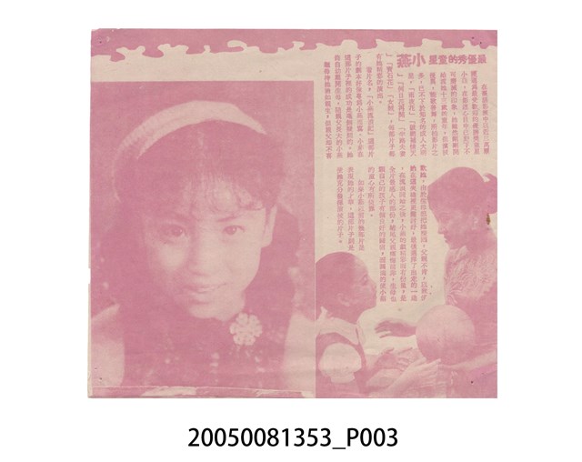 本件保存尚可,彩色印刷,為小燕流浪記電影本事。由小雪、小燕、田清、觀峰主演,導演田清,新中國企業股份有限公司發行。背面為台北市戲院票房賣座紀錄日報。