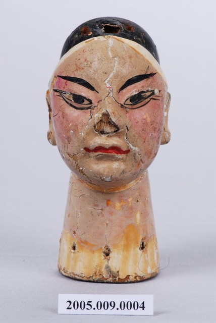 本件保存良好,為布袋戲角色頭盔偶小生之戲偶頭,偶之特徵為細目及黑帽。