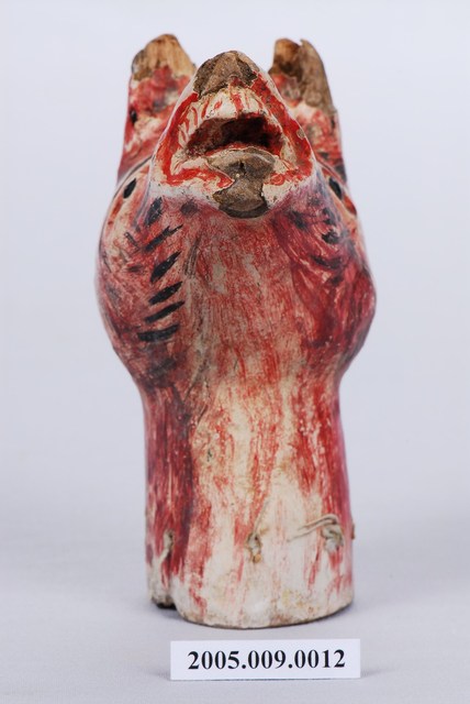 本件保存尚可,為布袋戲角色獸頭之戲偶頭,偶之特徵為驢首。