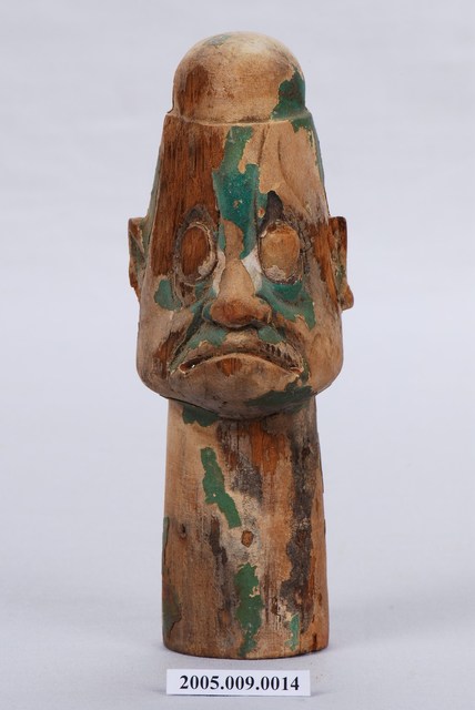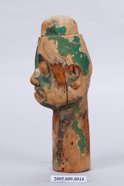 本件保存尚可,為布袋戲角色龜怪之戲偶頭,偶之特徵為綠色龜首,偶頭已褪色。