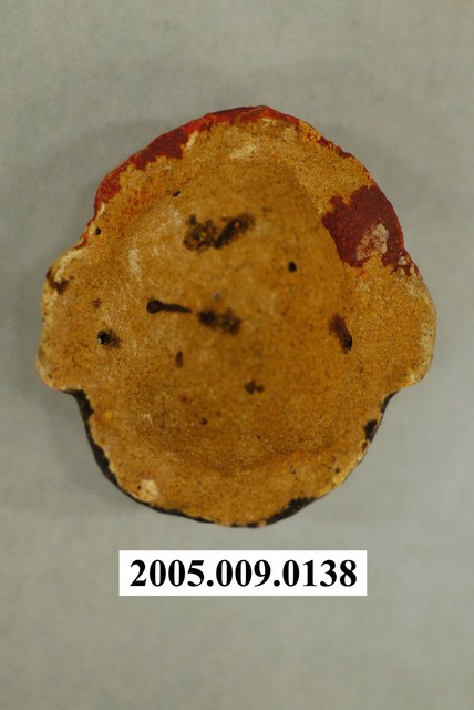 1.本件土黏香戲偶戴眼鏡半蒙面人像偶頭,頭戴紅帽,臉部呈乳白色,戴綠色鏡框、藍色鏡片眼鏡,鼻子以上蒙一塊黑布,兩耳各鑽一孔。2.戲偶俗稱「尫仔」,由偶頭、偶身、手、腳、服飾、裝飾等組成,偶頭多以木刻、紙糊等材質製做出形貌,外觀再上漆或彩繪。臺灣早期戲班使用的偶頭大多從泉州進口,稱為唐山頭,其中以「花園頭」、「塗門頭」最有名。「土黏香」戲偶偶頭是以線香香料混合木屑製作而成的戲偶偶頭。