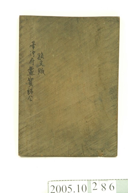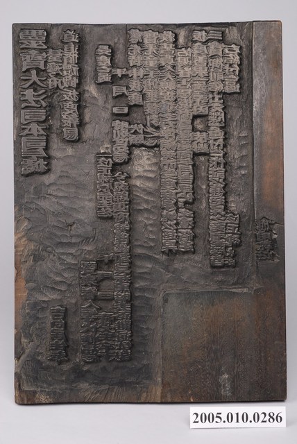本件為靈寶大法師疏文印版,為在生之人為亡魂所作普渡之疏文。背面寫有「臺灣府靈寶師公疏文版」。印版結合雕刻和印刷藝術,古代廣泛運用在刊印書籍,宗教民俗的版畫、符令、籤詩、疏文等印刷物上。