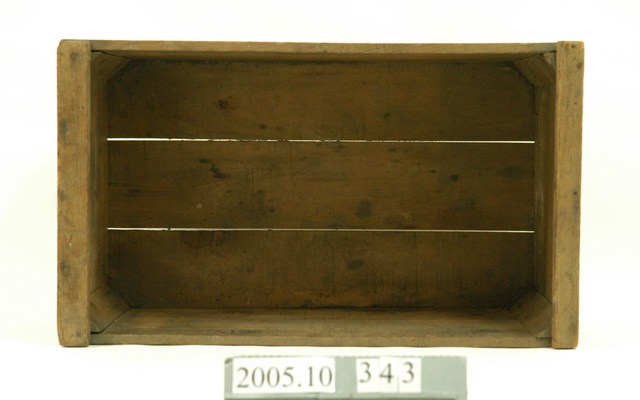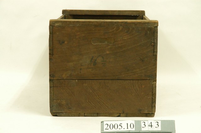 1.本物件為臺北州柑橘同業組合木箱,整體為木質,為木板拼接製成,頂端無蓋,其中一側印有「台北州柑橘同業組合」字樣。