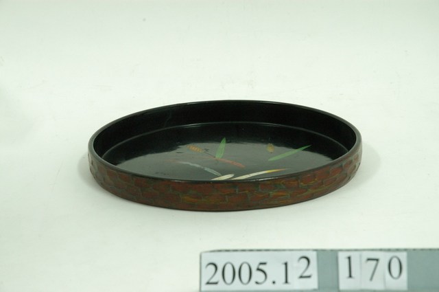 黑地蘆葦紋彩繪漆盤