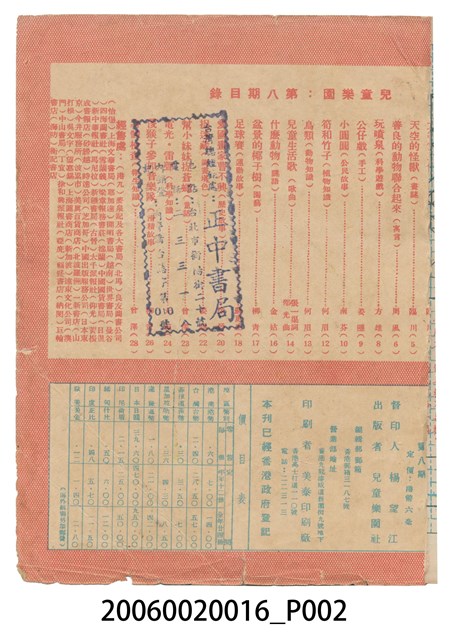 楊望江督印、兒童樂園社出版、美泰印刷廠印刷
