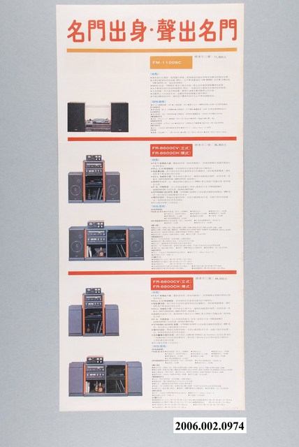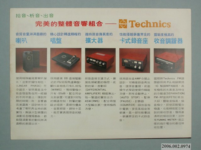 1.本物件為國際牌立體收音電唱機廣告單,紙製材質。廣告單主視覺為該收音電唱機產品,廣告單內容為產品特色、型號與規格之介紹。