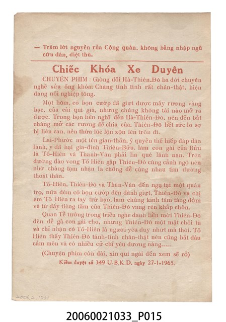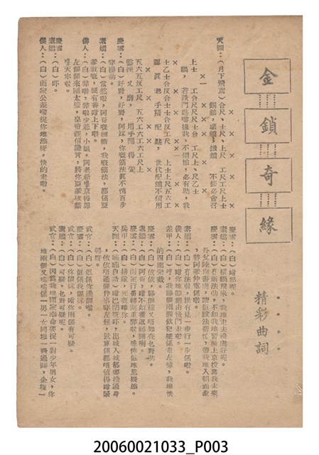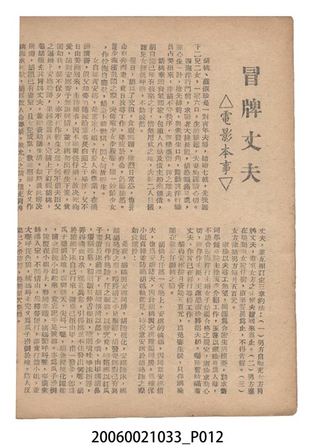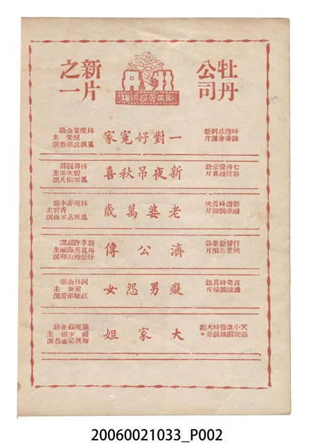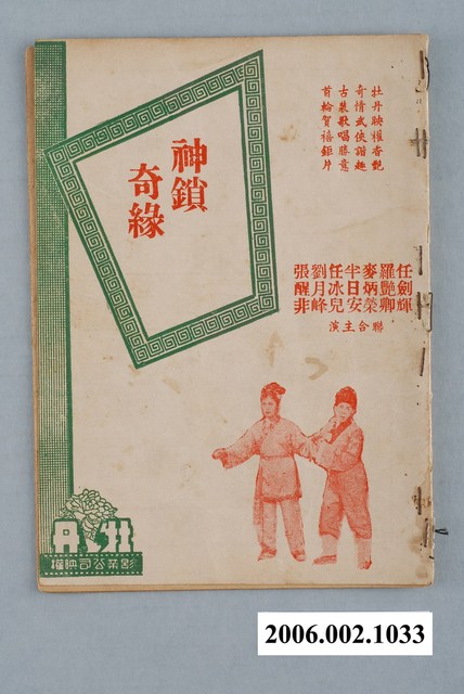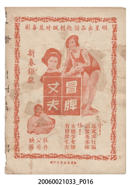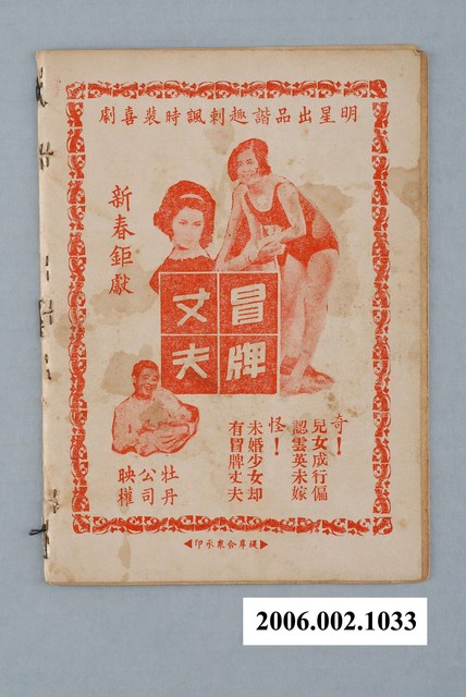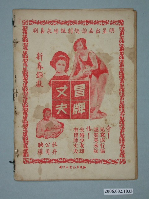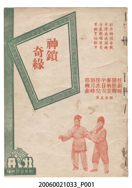 本件保存良好,彩色印刷,為神鎖奇緣電影本事。由任劍輝、羅艷卿、麥炳榮主演,導演珠璣,牡丹影業公司出品。正面印有牡丹影業公司商標,背面電影為冒牌丈夫。