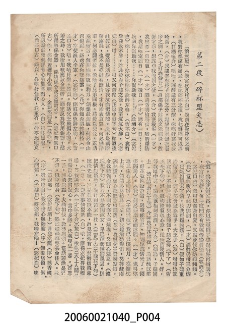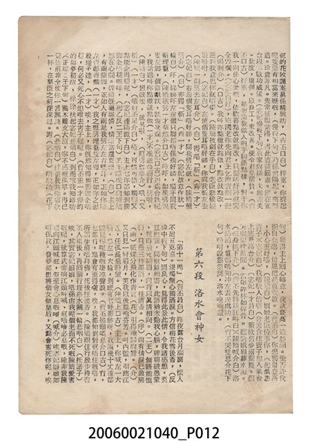 本件保存良好,彩色印刷,為洛神電影本事。由任劍輝、芳艷芬、半日安、麥炳榮主演,導演羅志雄。背面被用作筆記使用。