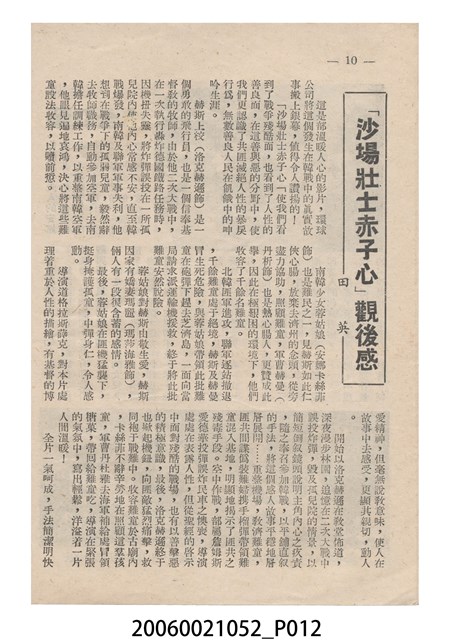 《沙場壯士赤子心》電影本事