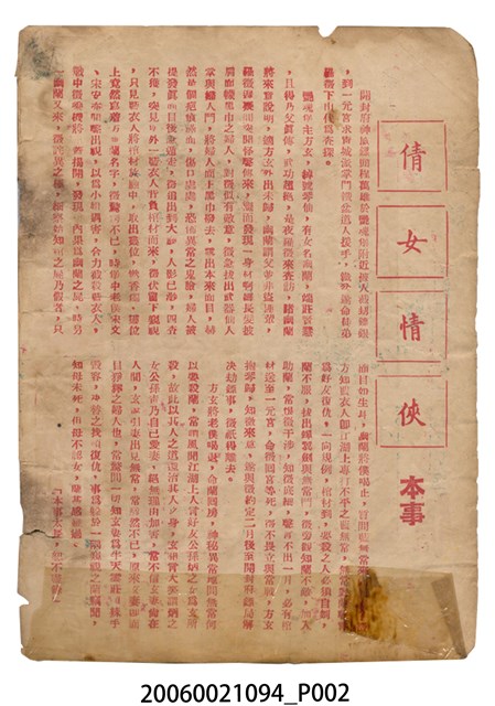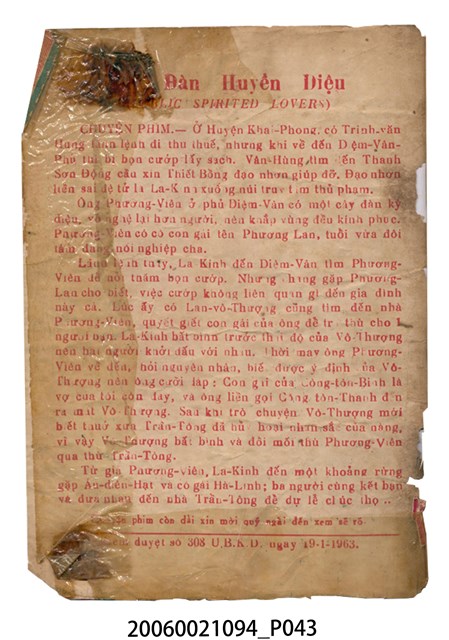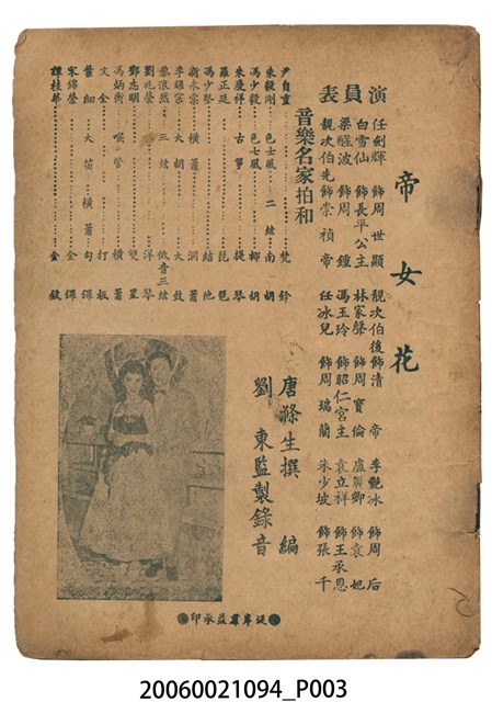本件保存良好,彩色印刷,為帝女花電影本事。由任劍輝、白雪仙、梁醒波、陳好逑主演,導演龍圖、左几。背面為電影倩女情俠。