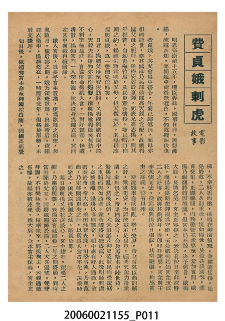 《費貞娥刺虎》電影本事