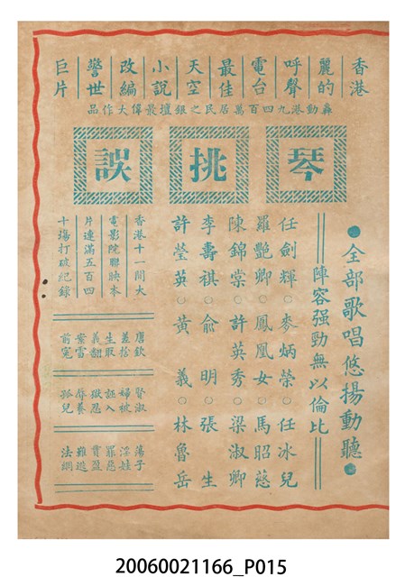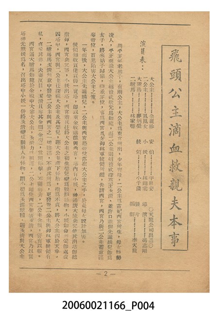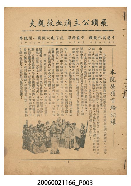 本件保存良好,彩色印刷,為飛頭公主滴血救親夫電影本事。由麥炳榮、鳳凰女、林家聲、余麗珍主演,導演馮志剛。背面為電影三女性。