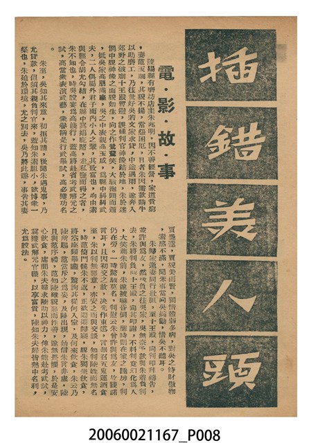 《插錯美人頭》電影本事