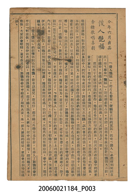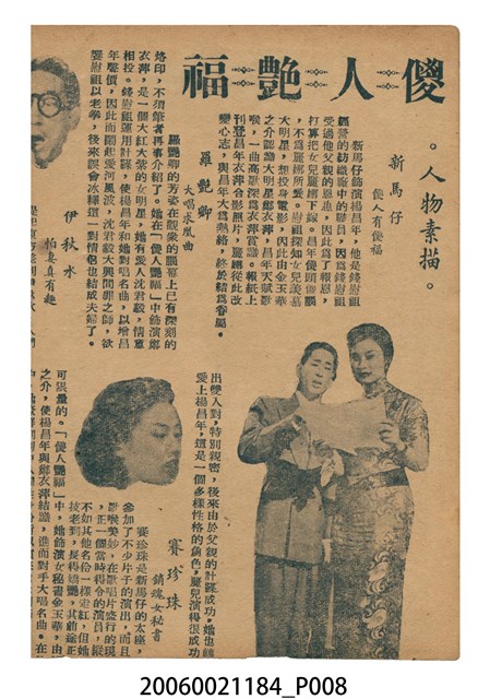 電影本事《傻人艷福》封面直幅彩色印刷,外觀保存良好。電影由新馬師曾、羅艷卿主演,導演梁鋒,香港電影。封底為《為情顛倒》電影,直幅彩色印刷,外觀保存良好。
