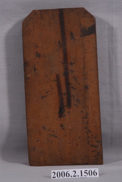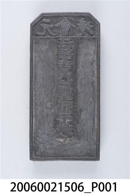 本件為元會境法華寺火德星君千秋印版,一塊長方形薄木版陽刻而成,印版為圭形,分上下兩部分,上面橫書「元會境」,下面直書「法華寺火德星君千秋」。印版為臺南「元會境火王爺神明會」所有,火王爺即南極大帝、火德星君,奉於法華寺火神殿。火神殿於康熙47年(1708)鳳山知縣宋永清倡建。印版結合雕刻和印刷藝術,古代廣泛運用在刊印書籍,宗教民俗的版畫、符令、籤詩、疏文等印刷物上。