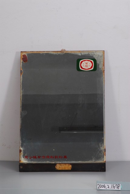 1.本件黑松飲料股份有限公司贈壁掛儀容鏡作直式長方形鏡面,呈長30.8公分,寬51.7公分,高2.4公分。正面採無鏡框樣式,周圍僅以金屬鉤爪固定,下端緣另有木條框露出,背面以木材製作條框架作襯,上端以螺絲固金屬壁掛片,可置掛於壁面。鏡面右上角印有黑松商標,以上綠色為長方形底框,中央內縮白色長方橢圓底框,另以紅色作相同略小框,框內緣作菱口白底,上端內印紅色「HEY-SONG」,下端「CITRON」,中央處為「黑松」,兩側寫有「註冊商標」。鏡面左下角印有紅字「黑松飲料股份有限公司」。2.本件木框鏡採壁掛方式置於居家或店面出入頻繁的地方,作整理儀容時使用。儀容鏡為商品贈送品或商家公關禮品,於鏡面印有商標與公司名稱,可達到廣告效果。