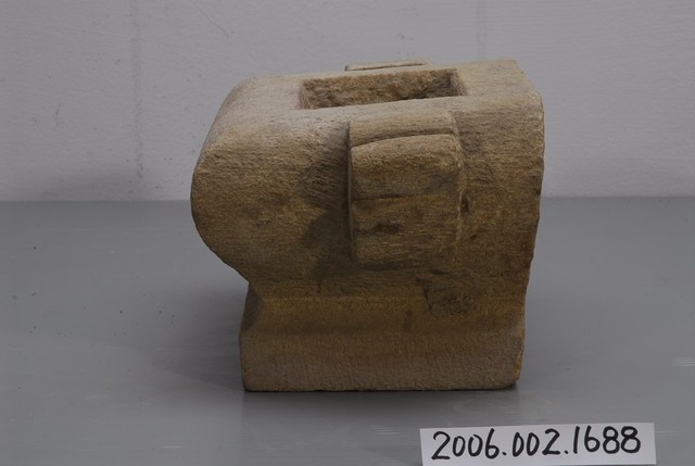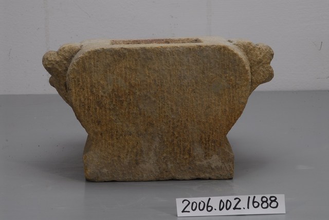 本件為癸酉年石香爐,器身方形,略呈壺身形式。爐身正面中央雕刻花紋,接近爐底刻「癸酉年冬月修」。兩側有連體展耳。香爐是祭祀神祇或祖先的宗教供具。材質有石、陶瓷、金屬等,多置於神桌上,爐身以圓形、方形居多。