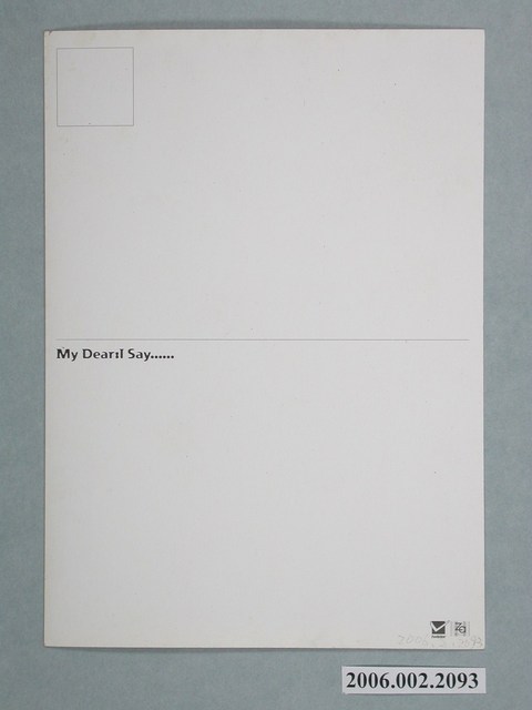 1.香港歌手、電影明星莫文蔚在臺發行中文照片明信片,直式雙面,莫文蔚把瀏海旁分,她身穿桃色高領上衣,位於左邊版面,眼神斜看右上方,右下角則是用粉色泡泡自己註記專輯名稱「I Say」,中間則有黑色微小字體註記「Karen Mok」。正面狀況良好,背面為明信片格式,中間一條橫線,左上角則是一正方形方塊為郵票黏貼處,橫線下方則有一黑色文字寫「My Dear I say」,右下角則有兩個廣告小Logo。2.香港歌手電影明星莫文蔚《我要說 I say》於1998發行,莫文蔚1993出道,曾發行過多張專輯作品如《他不愛我》、《廣島之戀》、《愛情》。電影作品代表作有《齊天大聖東遊記》、《墮落天使》、《食神》。