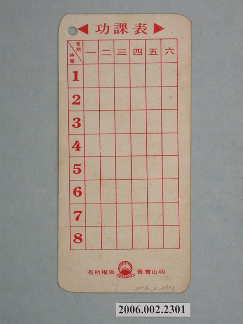 1.香港電影明星丁紅在臺發行中文彩色明星書卡,直式雙面,本名陳薇如,正面背景為藍色,有朵鮮艷的紅花位於左邊邊緣,丁紅面向左側,目光炯炯,脣紅齒白,面露微笑,下方留白版面則註記「邵氏明星之8, 丁紅」,左邊則是邵氏影業的招牌標誌,書卡右上角則有穿一圓孔,上方邊緣有些反白,書卡狀況尚佳。背面背面為以紅色色調設計一功課表,下方則標註版權為明山書局所有。狀況大抵良好。2.此書卡為明山書局出版一系列明星書卡,取丁紅加入邵氏影業1957-1966時期的劇照,曾拍攝《你是我的情人》、《丈夫的情人》等電影。