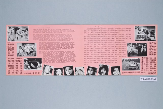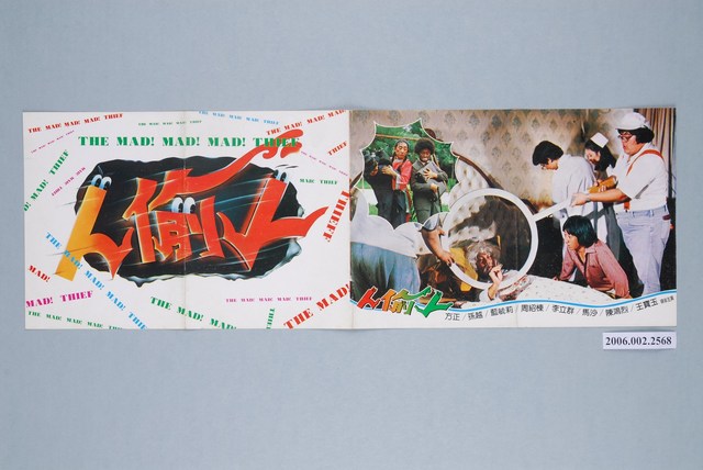 本物件為人偷人宣傳單,紙質文物。正面為劇照以及領銜主演名單,包括「方正」、「孫越」、「藍毓莉」、「周紹棟」、「李立群」、「馬沙」、「陳鴻烈」、「王寶玉」。內頁介紹該片之主要工作人員,以及其劇情介紹,並標示其為「台榮影業有限公司出品」。