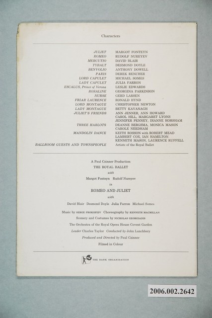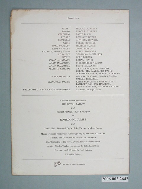 本件保存良好,彩色印刷,為Romeo and Juliet電影本事。電影由Margot Fonteyn、Rudolf Nureyev主演,導演為 Paul Czinner。