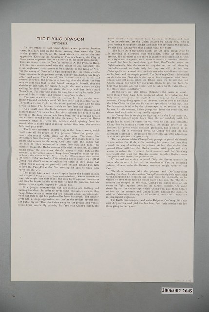 本件保存良好,彩色印刷,為紅豔女飛龍電影本事。電影由韓湘琴、唐威主演,導演為徐天榮。