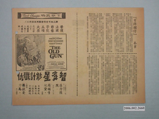 本件保存良好,單色印刷,為新都‧快樂戲院出品有牌爛仔 The Cop In Blue Jeans/Squadra antiscippo 電影本事,由譚馬士米蘭 Tomas Milian、積皮連斯 Jack Palance主演,導演 Bruno Corbucci,其他部分為電影處女星座、智多星妙計殲仇宣傳。