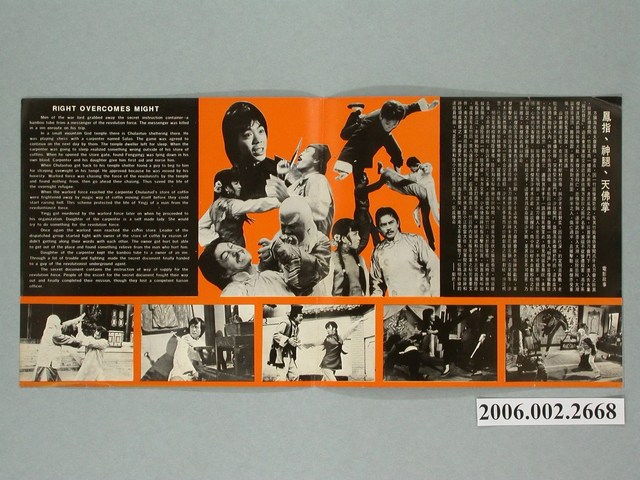 本件保存良好,彩色印刷,為鳳指神腿天佛掌電影本事,由陳星、王道、果青、張復建主演,導演唐成大。