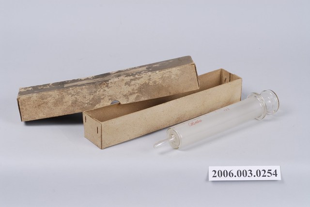 本物件為玻璃注射筒。共有2個物品,分別是注射筒與包裝盒。